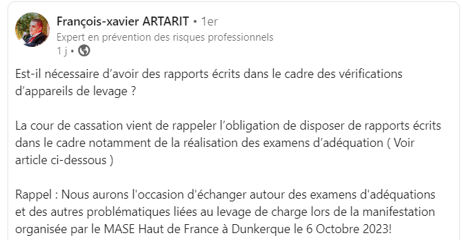 Grue obligation = Examen d’adéquation 20 septembre 2023 / securitetravail #INRS #GRUE @francois-Xavier_Artarit Partager :TweetJ’aime chargement… Similaire