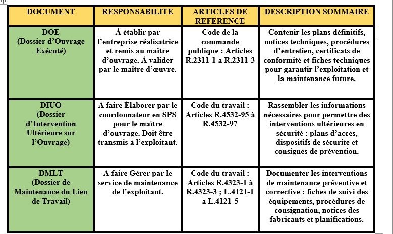 « Le DIUO n’est pas un document de maintenance, mais il rassemble, sous bordereau, les documents techniques, plans et notices permettant de faciliter les interventions ultérieures sur l’ouvrage.